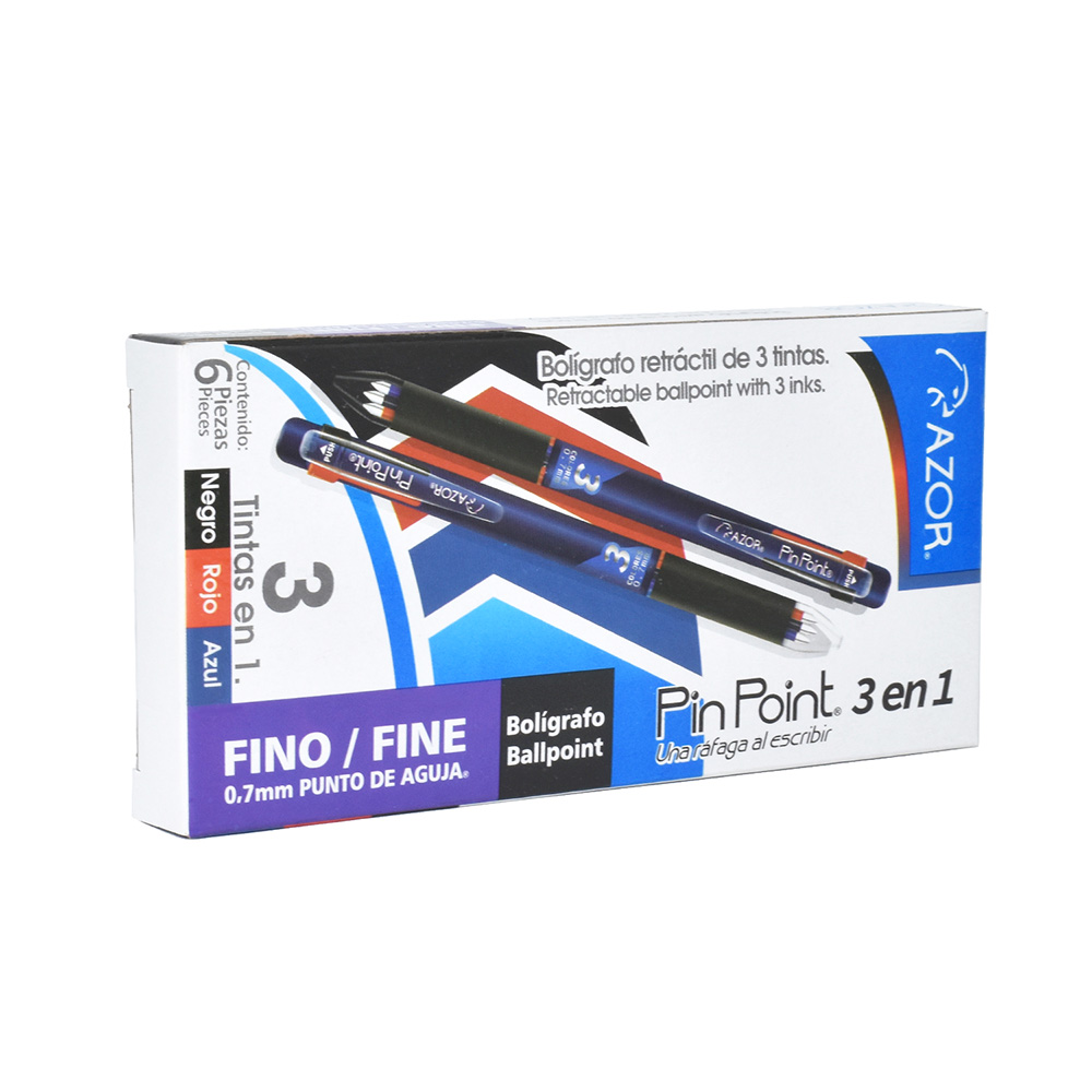 BOLIGRAFO AZOR PINPOINT RETRACTIL 3 EN 1 (AZ, NG Y RJ) (6130CS) PIEZA*