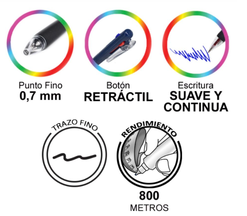 Bolígrafo Punto fino de 0.7 mm con tinta de baja viscosidad para una escritura más fluida y suave. Su mecanismo retráctil protege la punta, mientras que el grip de goma brinda comodidad. Además, el clip retráctil permite cambiar de tinta fácilmente y evita rayones al usar la punta solo cuando sea necesario.
