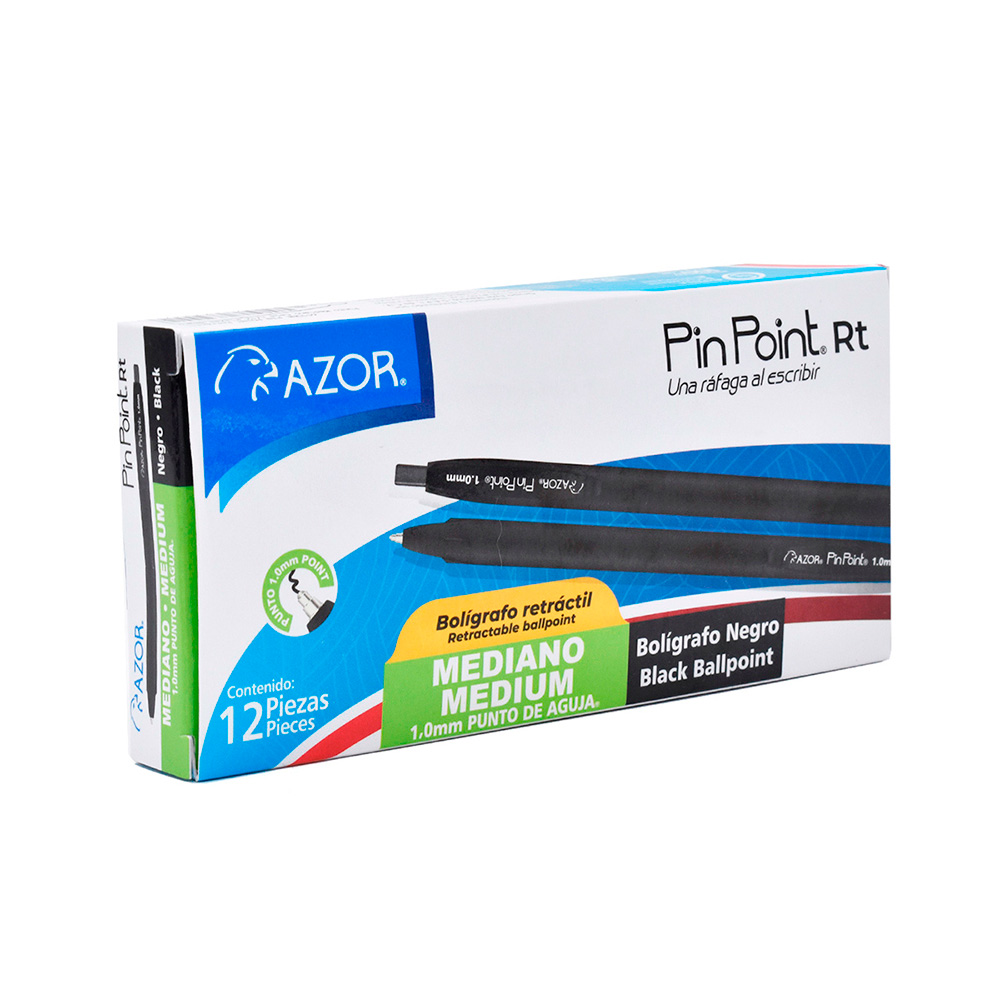 BOLIGRAFO AZOR PINPOINT RETRACTIL MEDIANO 1.00MM NEGRO C/12 PZAS (6110NE) *