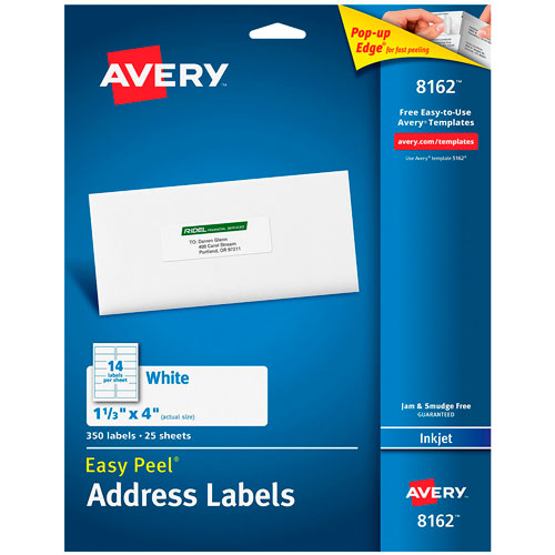 ETIQUETA AVERY NO.08162 INK JET BLANCA 3.4X10.20 CM C/350 *