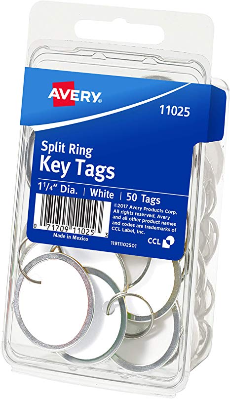ETIQUETA AVERY NO.11025 COLGANTE REDONDA P/LLAVES ARO METALICO C/50 ***
