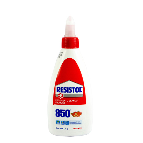 Resistol 850 es un pegamento base agua de color blanco, desarrolla su máxima adhesión 24hr después de haber realizado la unión, para más información consulta la ficha técnica.