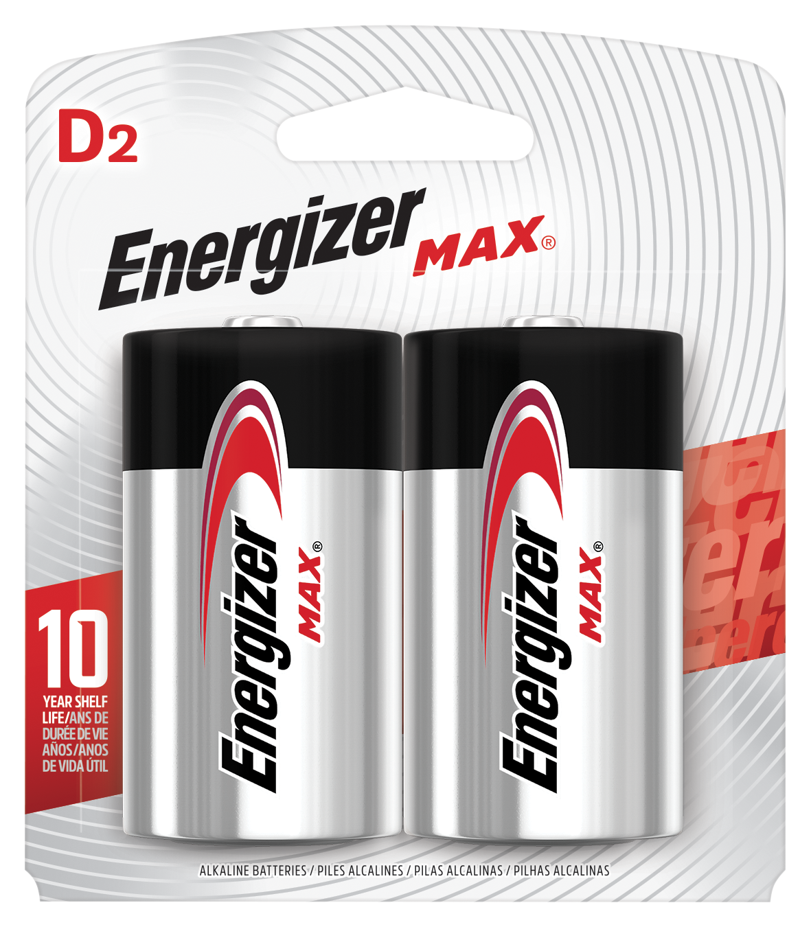 la pila alcalina con la que cuentas todos los días para dar energía a tus linternas más grandes, juguetes a control remoto y radios de gran tamaño, es aún mejor. Las pilas D Energizer MAX® ahora mantienen su carga durante 10 años*. Nuestra tecnología patentada Powerseal™ garantiza que tendrás energía en la que puedes confiar, tanto si te estás preparando para esa tormenta que se ve en el horizonte o simplemente deleitando a tus hijos con un juguete a control remoto. Una vida útil de 10 años significa que puedes estar seguro de que siempre tendrás energía cuando más la necesitas.