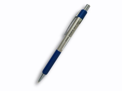 Lapicero mecánico en metal, mina 0.5mm con grip ergonómico, punta amortiguable y borrador libre de PVC.