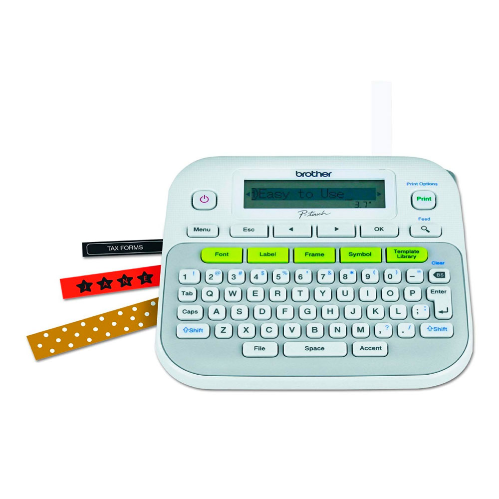 Pruebe las prácticas plantillas con etiquetas y patrones de diseño pre-elaborados. Desde etiquetar carpetas de archivos, cables y alambres hasta elaborar tarjetas de regalo y álbumes de recortes, le puede dar más usos que nunca a la PT-D210.