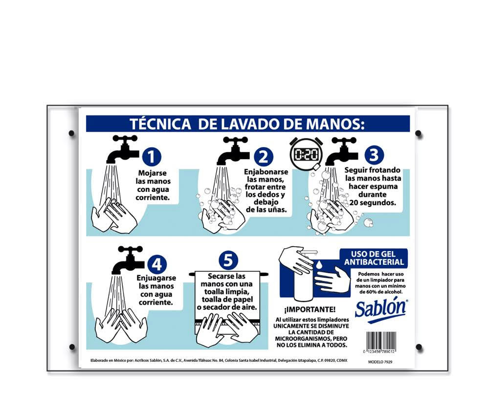 Etiqueta: SEÑAL EN ACRILICO TECNICA LAVADO DE MANOS 35X24 NO.7775