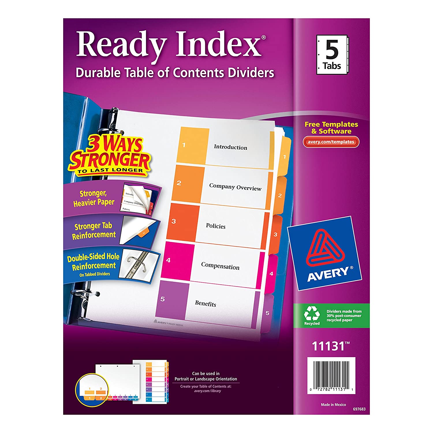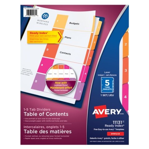Separador AVERY 11131 Separador Láser/Inkjet, 5-Pestañas, Prediseñado, Multicolor
