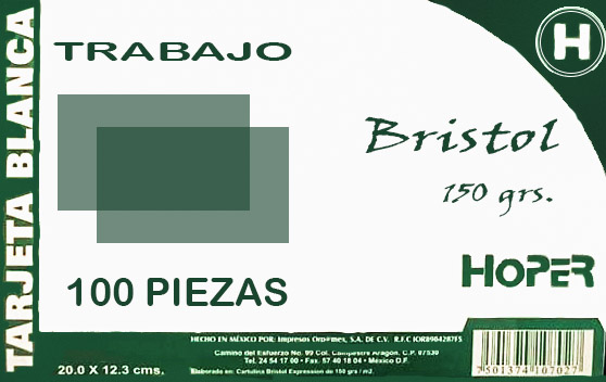 TARJETA BRISTOL 3 X 5 BCA C/100 *