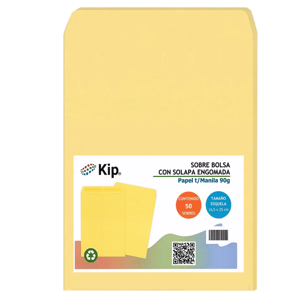 SOBRE BOLSA C/50 KIP MANILA/ENG 16.5X25 ESQUELA 90GR.